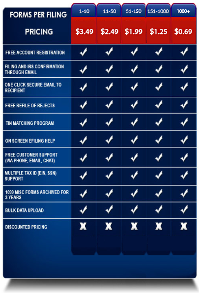 Prices shown are per form filed and apply to both "Print/eMail and eFile" and "eFile Only" service.